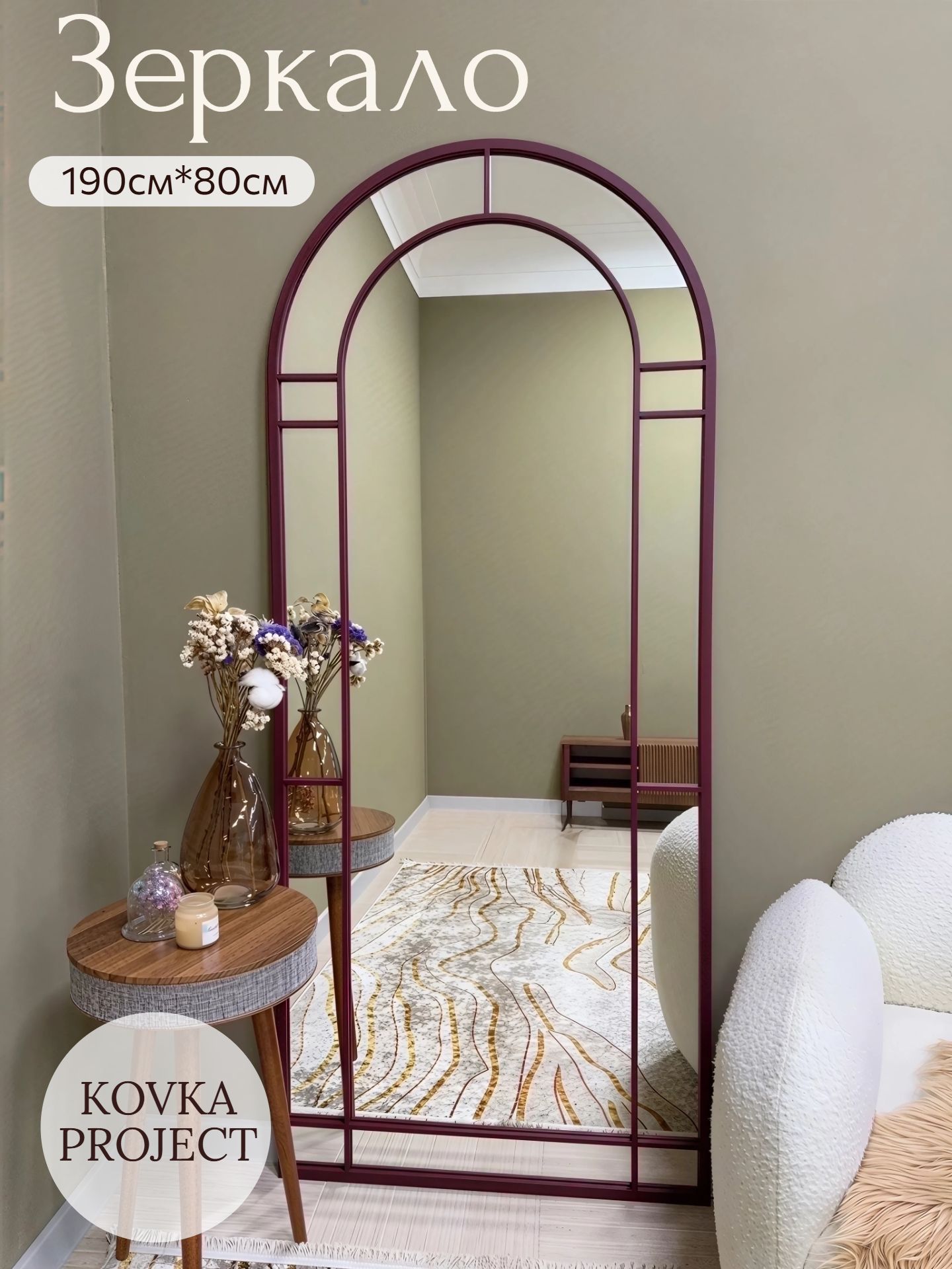 Металлическая рама зеркала нашего производства KOVKA PROJECT, окрашенная в цвет Бургунди, — это идеальное сочетание прочности и эстетики. Такое обрамление придает зеркалу не просто функцию отражения, но статус полноценного арт-объекта. Литые или кованые элементы, покрытые стойкой порошковой краской с бархатисто-матовым или благородным глянцевым финишем, выглядят дорого и основательно. Зеркало в бордовой металлической раме не теряется в пространстве, а становится его смысловым центром — будь то прихожая, где оно задает тон всему дому, гостиная над камином или изголовье кровати в спальне. Это инвестиция в стиль, которая благодаря своему вневременному характеру будет радовать вас долгие годы, делая ваш интерьер уникальным и полным гармонии.